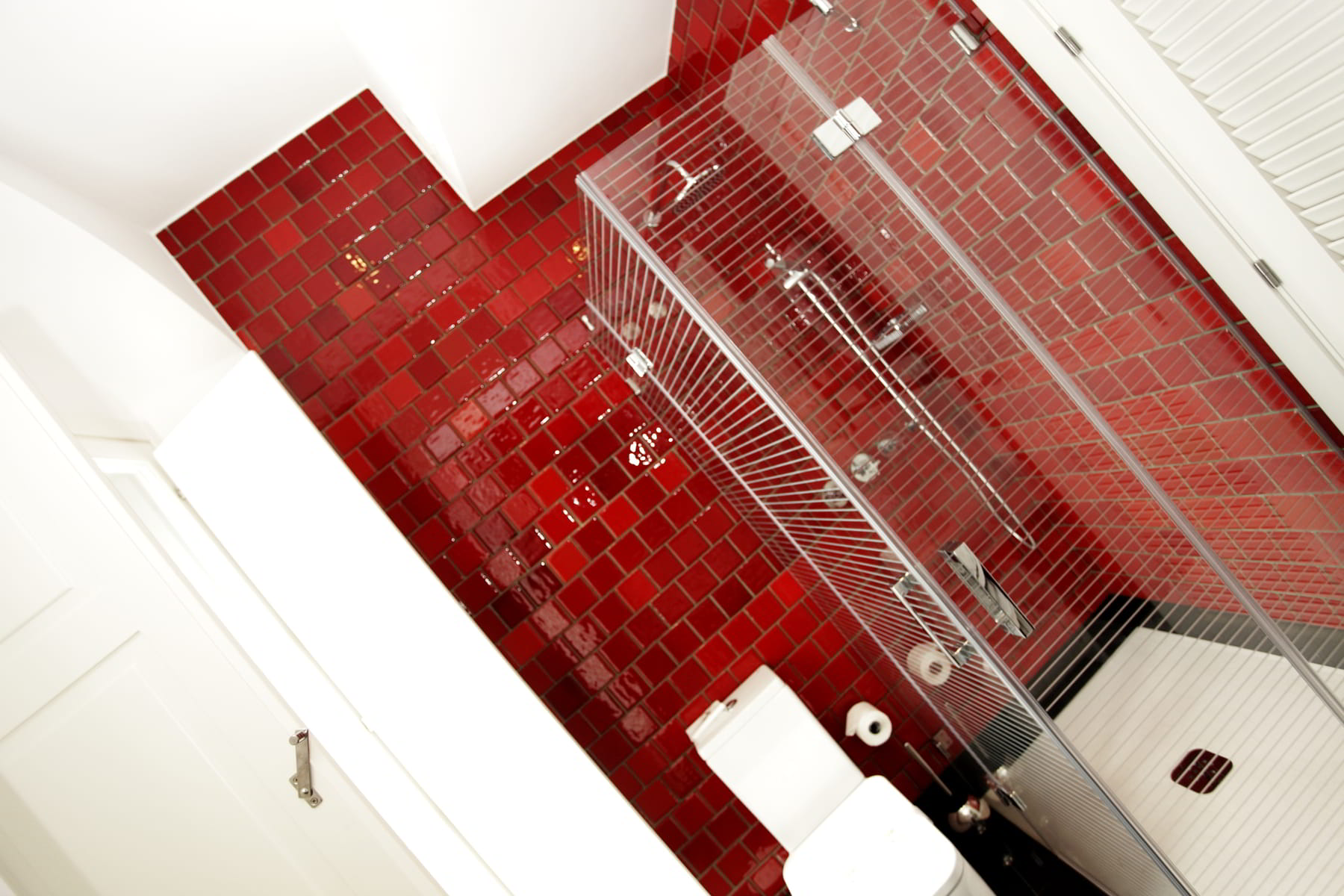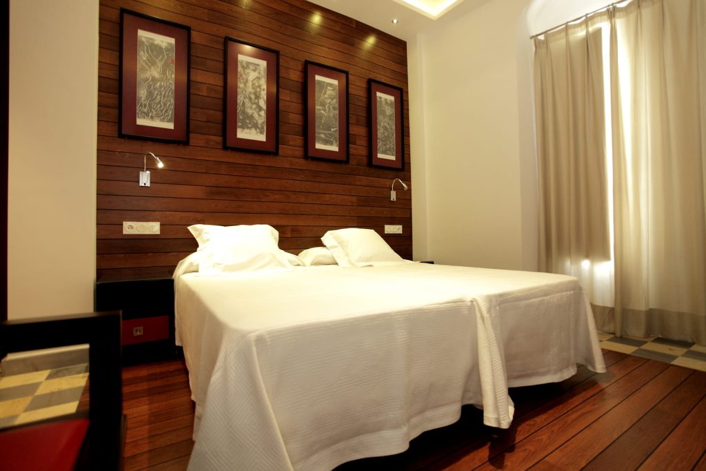 Amapola está situada en la primera planta con 3 balcones al exterior uno de ellos dentro del baño. Esta habitación es por tanto muy luminosa y además es bastante espaciosa. Tanto en los grabados como en la decoración el rojo y el negro son los colores protagonistas. Superficie total: 19 m2.